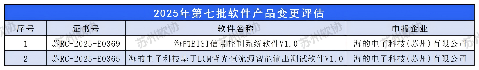 苏州市2025年度第七批软件产品变更公示名单