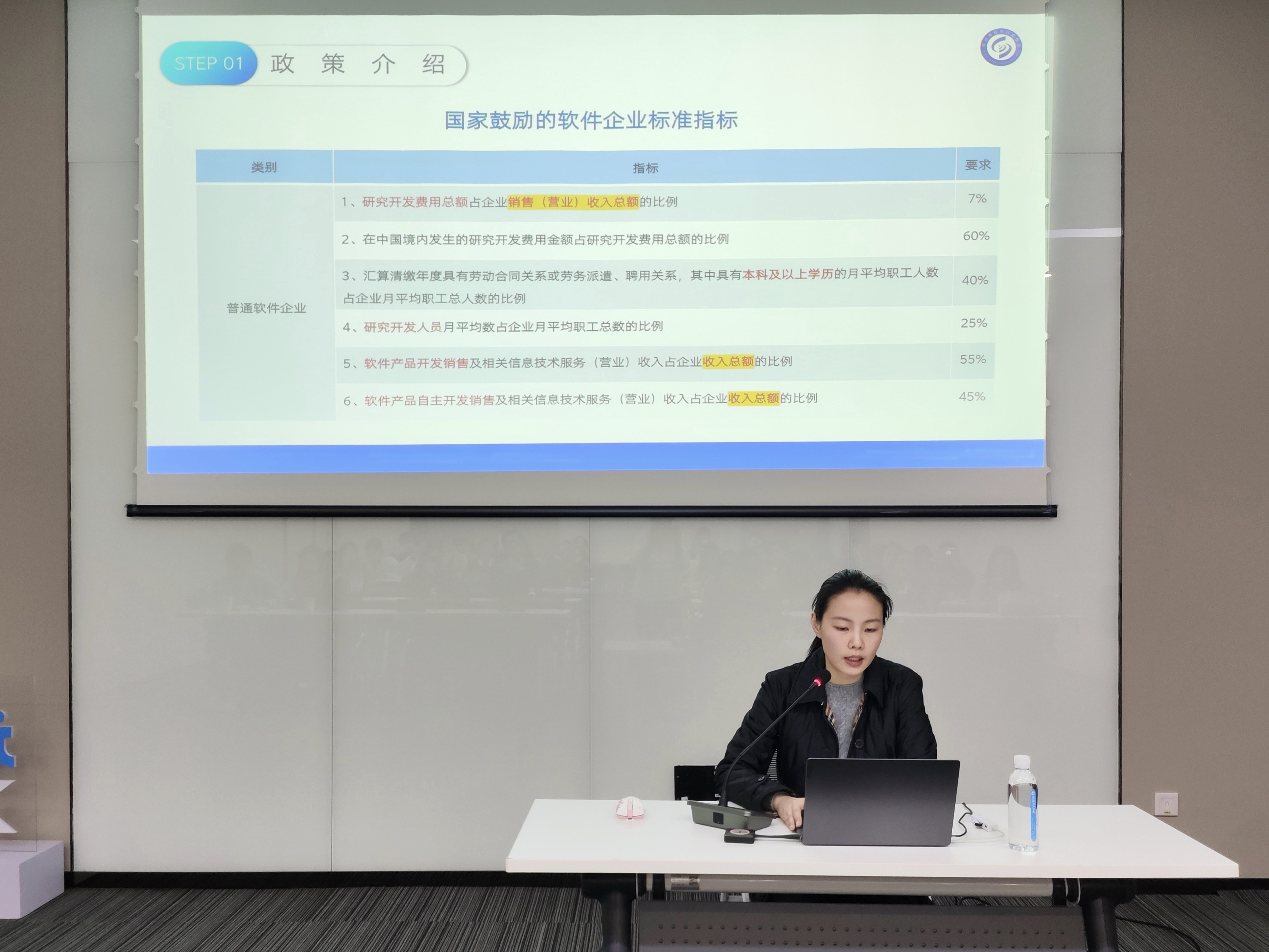 活动伊始,市软件行业协会季晓丹围绕国家鼓励的软件企业及重点软件企业政策展开系统宣讲,就认定标准与申报要点等进行了全面解读,为企业合规申报、享受政策红利提供了清晰指引。