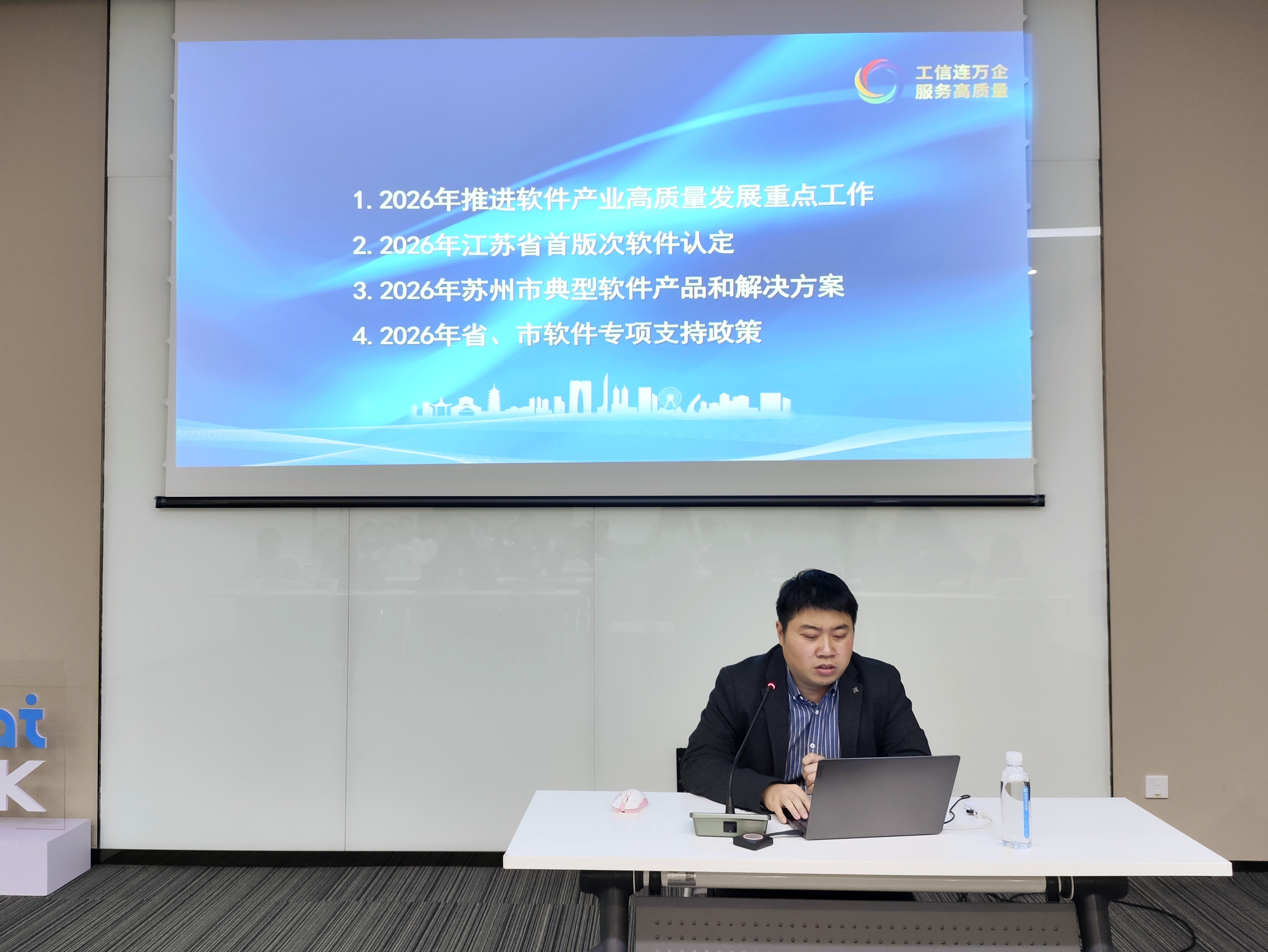 随后,市工信局人工智能发展处工作人员对2026年软件重点工作,相关项目和资金支持政策进行解读,详细介绍项目申报方向、支持重点与注意事项,为企业高效对接软件政策,加快创新发展提供重要参考。