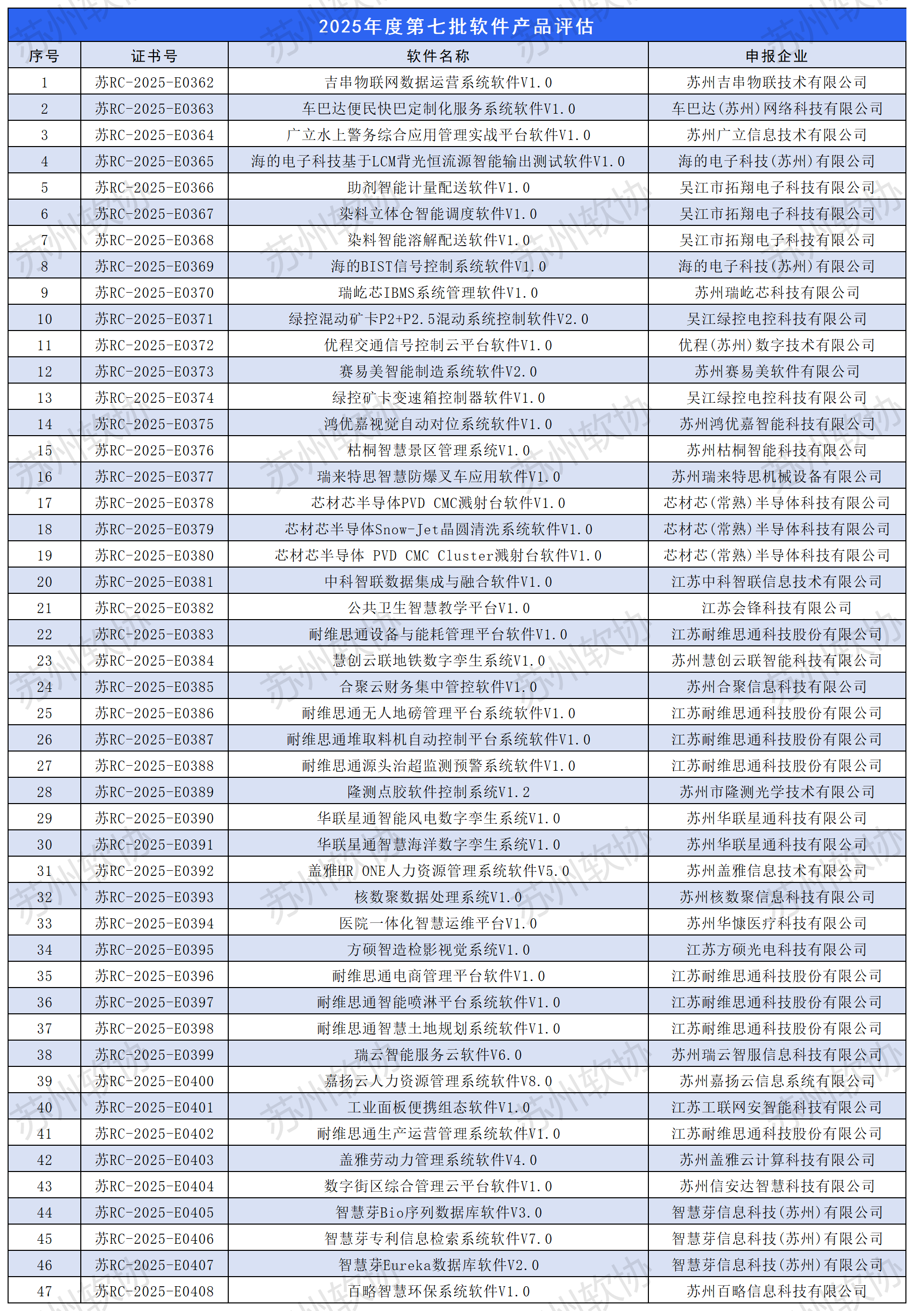 苏州市2025年度第七批软件产品评估公示名单